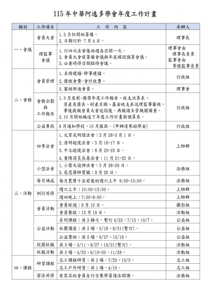 2026年度四季法會